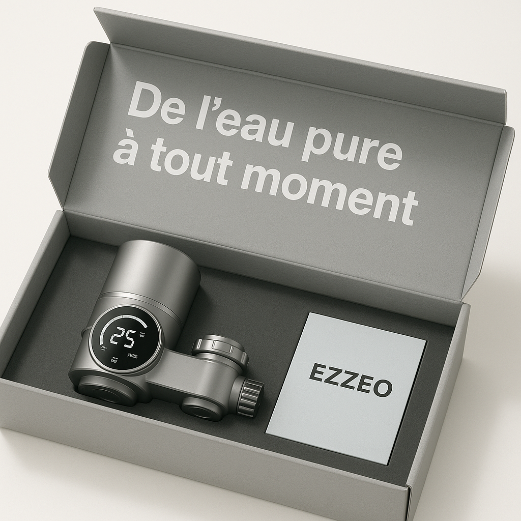 Le purificateur EZZEO associe une filtration multi-étages et une technologie UV pour réduire chlore, particules et mauvais goûts. Profitez d’une eau pure, plus agréable à boire — idéale aussi pour votre peau : une hydratation plus saine et un rituel skincare naturel à chaque lavage. Diminuez vos bouteilles plastiques et vos dépenses du quotidien.