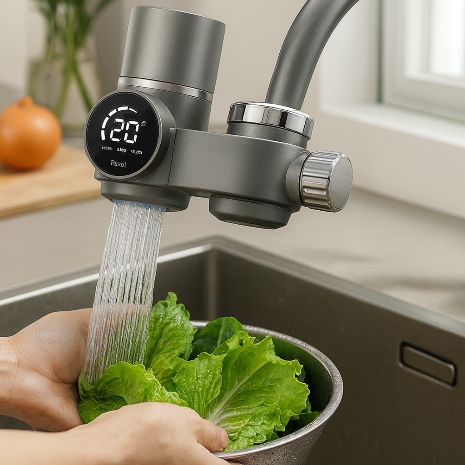 Notre purificateur utilise la technologie UV et une filtration avancée pour éliminer 99,9 % des bactéries, virus et impuretés. Résultat : une eau saine, pure et agréable au goût, directement depuis votre robinet.